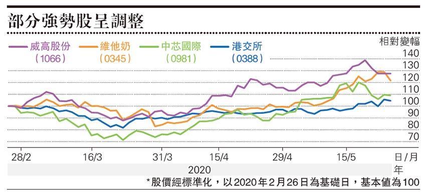 昨天除了部分教育股、海底撈(6862)、世房(0813)或體育用品股等買盤較為積極外,強勢港交所、中芯(0981)、維他奶(0345)、威高股份(1066)等呈調整,加上不少生物科技B類股、物管逆市下跌,炒股不炒市氣氛未恢復,不宜太進取。