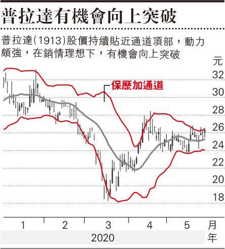 強勢股沽壓沉重,互聯網醫療、醫療設備、軟件、甚至物管股都出現持續較大跌幅。現在是一個交易型市況,強勢股累積升幅大、過度擠擁兼估值偏高,一定會回落,但主題仍然有效的話,低位仍可買。個別股份如愛康醫療(1789)、微盟(2013)等,昨日也成功由低位顯著回升。只是整體上波幅很大,若非貼市、心理上未能承受的就不要勉強。消費股表現偏強,青島啤(0168)、華潤啤酒(0291)逆市上升,高端的普拉達更升3.5%,處於保歷加通道頂部。