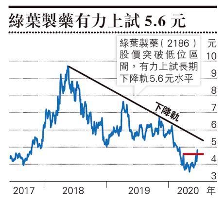 測可能不是6月初、5月底已出現,或要提前推1個月,意味可能已擴散至相當大範圍。未知是否與此有關,昨日市場炒作醫藥股,板塊個股普遍上升,多隻股份創新高。究竟是純粹炒作後還是一個新熱點,暫時很難判斷,但從個股角度出發,綠葉製藥(2186)有條件中長期回升。