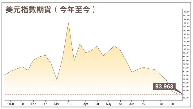 美元自3月升至高位後至今一直逐步回落,王SIR解釋背後多有個原因。1)第一個原因也就是最傳統的原因,雙赤-貿赤及財赤高企;2)聯儲局3月時大刀闊斧兩度劈息至0至0.25厘;3)揚言無限量QE:4)歐盟上周終於通過發行規模達7500億歐元的共同債券,協助經濟受疫情嚴重影響的國家,其中意大利獲益最大,估計可獲820億歐元補助金及1270億歐元低息貸款,佔發債額逾27%。此計劃通過意味歐洲經濟危機暫時得到緩解,歐元逐步回升;5)疫情控制的表現,歐洲似乎較美國理想,誘發部分停泊於美國資金回流歐洲;6)美國除了疫情未受控制,還受到共和、民主兩黨爭拗不斷、種族分歧、中美磨擦等問題困擾,為減低風險基金及富商都不得不把資產分散配置到其他市場如歐洲或貴金屬等;7)去全球化趨勢加劇,減少對美元需求;8)孳息曲線控制將會成為助力,進一步推低美元。