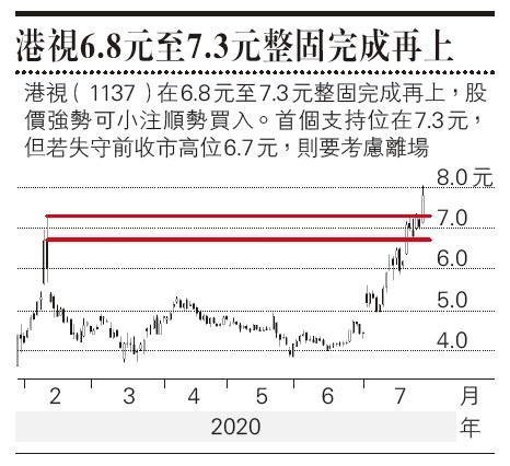 政府不封關,反而限制港人活動,此舉將利好網購,港視飈升11%再破頂。走勢上,港視確實嚴重超買,但高位整固後再破頂的股份,筆者覺得不宜貿然估頂,而買港視也是對沖港府管治能力和香港疫情風險,而這個風險又實在是高得無法估計的。現時仍可順勢跟進,而港視每次大漲後多有短暫整固,應有低吸的機會。