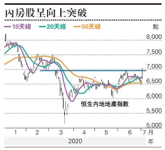 反映大型內房的恒生內地地產指數昨天漲逾8%,升穿第二季高位,下一步將嘗試回補3月下跌裂口;成分股中,融創(1918)、恒大(3333)、金茂(0817)昨升逾一成表現最強,當中金茂蓄勢挑戰新高走勢最佳,望可待其回調於6元附近吸納,博向上破頂。至於中小型內房股旭輝(0884)、合景泰富(1813)先破頂,奧園(3883)回調後再度發力,可博追落後。