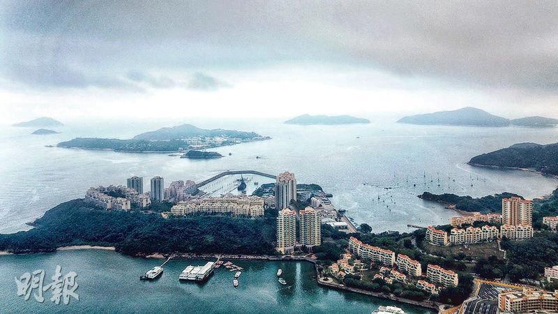 作者指唔敢推行明日大嶼計劃,到了明日,又有不少有心人批評香港政府治港不力,連最基本房屋問題,竟然拖了多年仍未解決。圖為「明日大嶼」計劃一帶海域,下方為愉景灣。